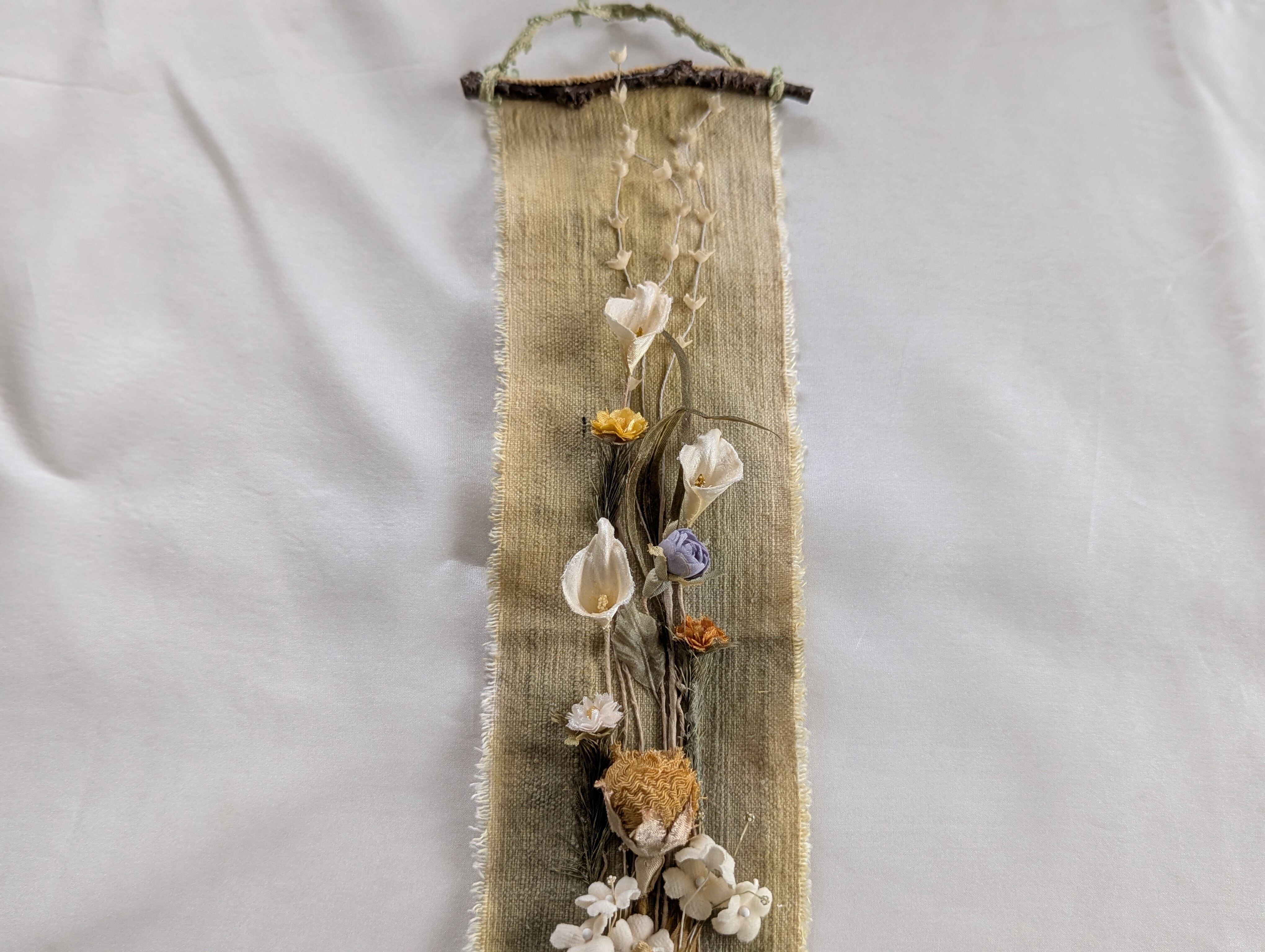 どこにでも飾れる大きさのかわいいお花タペストリーです。