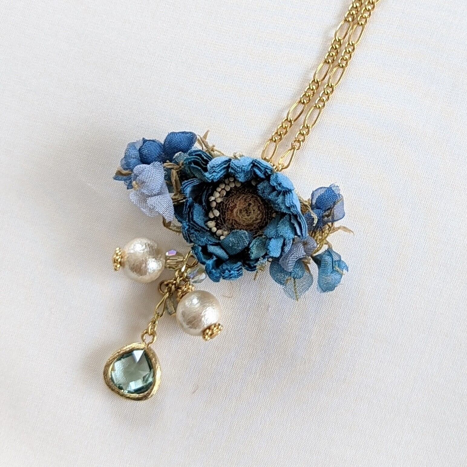 下にはコットンパールなど上品アクセサリーパーツ。 胸元に咲くお花がとってもかわいいです。